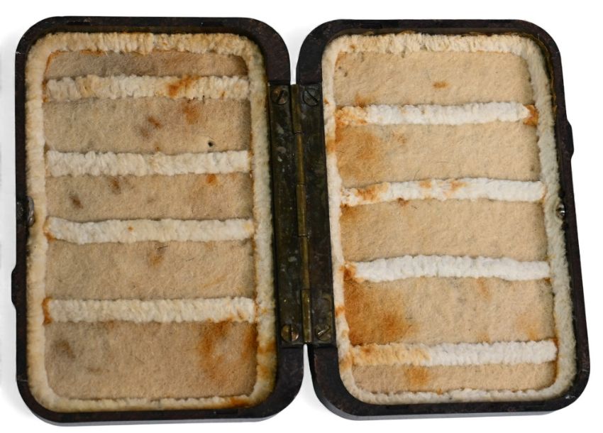 Hardy Alnwick Neroda Top Pocket deep fly box with chenille bands to both sides. Very good clip, closes well, light use