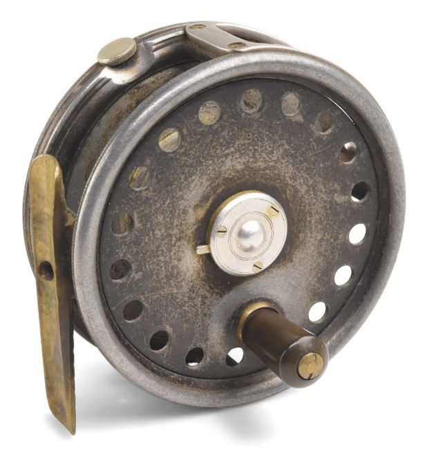 Rare Hardy the Barton 3 ¼" RHW alloy trout fly reel with correct ribbed brass off set foot, 4 screw rectangular nickel line guide, 3 screw latch & black handle, twin internal V springs & pawls, backplate stamped J.S, rim tension regulator.