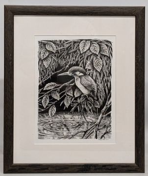 Paul Cook Fishing Artist original art Kingfisher and Float - an original drawing by Paul Cook from his book - Lost in a Quiet World - page 166 size #33cm x 49cm