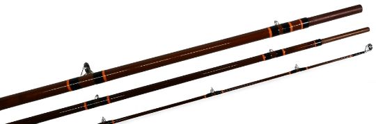David Horne hollow glass salmon fly rod, 13ft 3pc, line 10#, 26" handle, alloy sliding reel fitting lined butt/tip rings, cloth bag. Light use