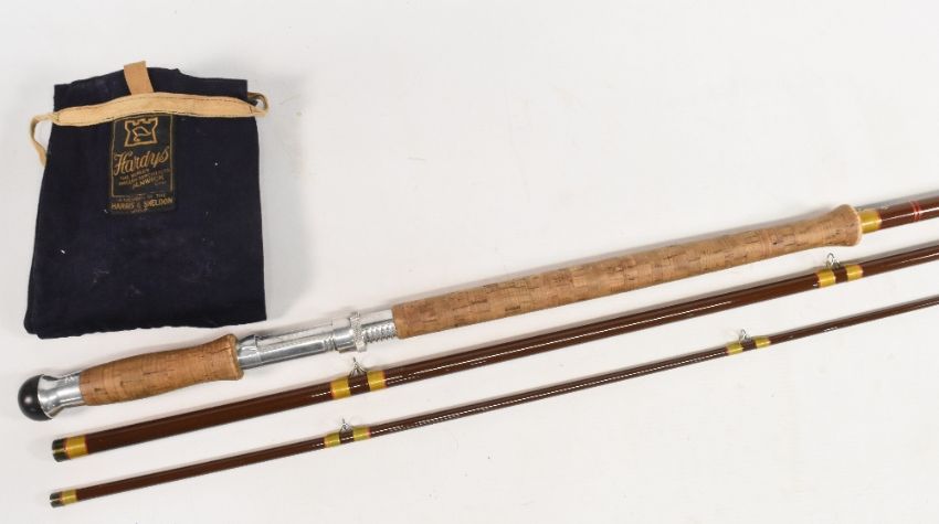 Hardy Bros "The Salmon Fly" hollow glass salmon fly rod, 12ft 6" 3pc line 9#, 24" handle, alloy down locking reel seat, red agate butt/tip ring, MCB. Light use