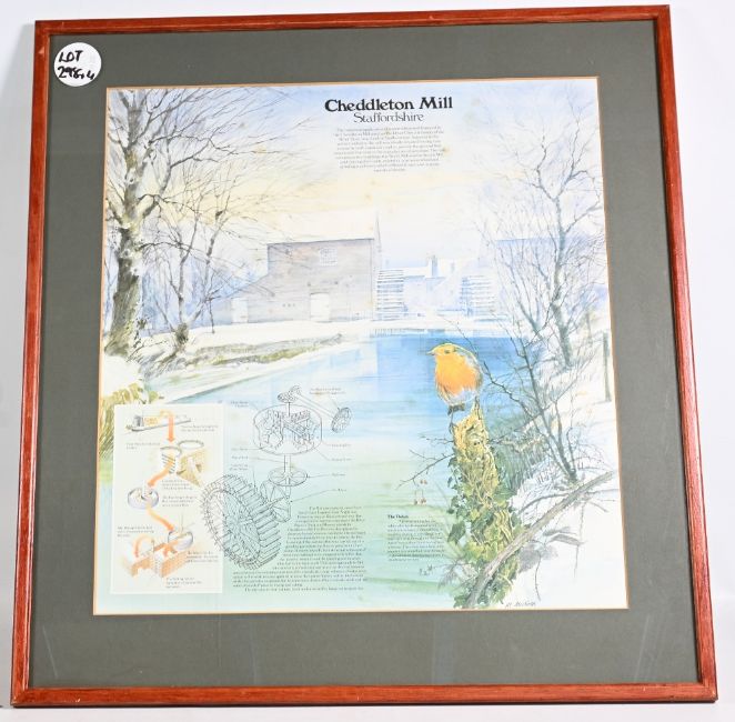 4x Water Wheel Mills - Fishing & Wildlife Prints Newnham Hill Worcestershire, Kingsbury Mill Hertfordshire, Cheddleton Mill Staffordshire, Venn Mill Oxfordshire - all framed under glass - size 51cm x 56cm (4)
