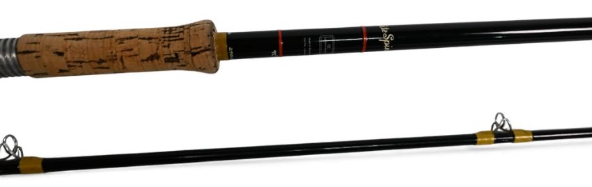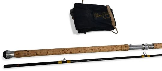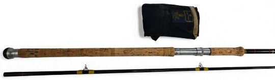 Hardy Alnwick fibalite spinning rod in black finish, 9ft 6" 2pc, 28" handle, alloy down locking reel seat, lined tip ring, MCB. Light use