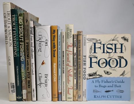 A collection of Fishing Books comprising of Fish Food A Fly Fisher's Guide to Bugs and Baits 2005 Ralph Cutter, Fishing for Sea Trout in Tidal Water 1950 Richard Clapham, The Steelhead Trout 1988 Trey Combs ex-library, The Pursuit of Stillwater Trout 2001 Brian Clarke (signed), Sierra Trout Guide 1991 Ralph Cutter, Tales from The Angler's Retreat 2009 Matthew Crampton & David Peutherer, My way with Trout 1987 Arthur Cove, On Fishing 2007 Brian Clarke (signed), Trout from Small Stillwaters 1994 Peter Cockwill (signed), Fly Fisherman's Complete guide to Fishing with the Fly Rod 1978, Big trout Fishing 1987 Peter Cockwill ex-library, The Complete Book of Trout Flyfishing 1995 Goran Cederberg, Trout & Salmon of the World 1990 Silvio Calabi (13) Generally in good condition
