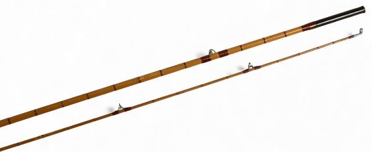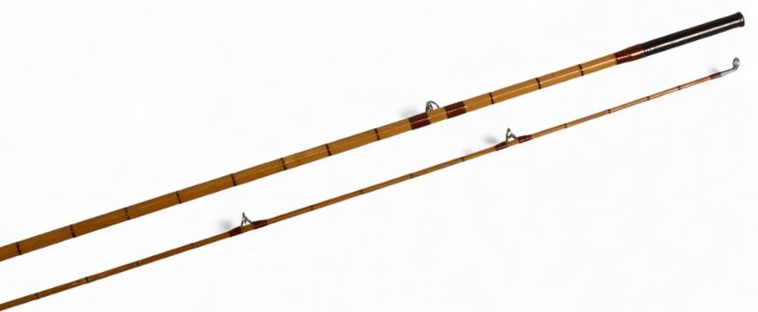 Greys of Alnwick "The Aln-De-Luxe" split cane trout fly rod, 9ft 6" 2pc line 6#, alloy uplocking reel seat and collar, lined butt/tip ring, cloth bag. Light use, very nice