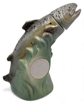 Jim Bean Fishing Salmon Ceramic #27cm tall Liquor Decanter - National Freshwater Fishing Hall of Fame bottle, sealed with contents