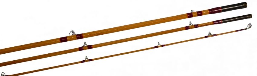 W O Caudle Maker "The J Bora" split cane salmon fly rod, 14ft 3pc line 9/10#, 27" handle, alloy sliding reel fitting, lined butt/tip rings, cloth bag. Light use