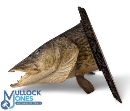 Preserved Pike's Head - mounted on wooden plaque, approximately 12" x 7", naturalistically painted, good example