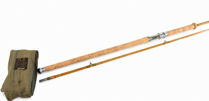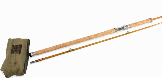 Fine Hardy Alnwick "The No 1 LRH" spinning Palakona rod H23747, 9ft 6" 2pc, 28" mushroom handle, alloy down locking reel seat, lined rings throughout, pin lock joint with original ferrule cover, MCB. Very light use