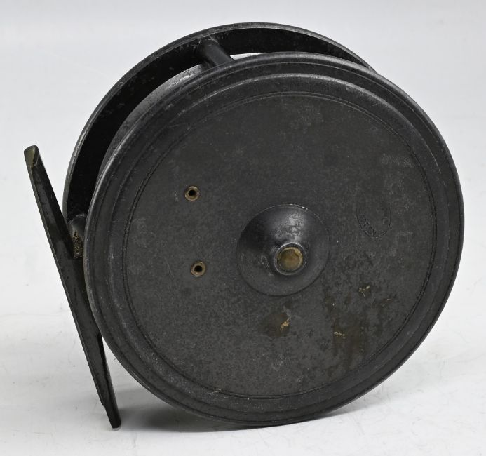 Dingley built Brown of Aberdeen alloy salmon fly reel, 4 ½" wide solid spool with large spindle screw and black handle, bridge foot and constant check (D6 internal stamp). Runs very well