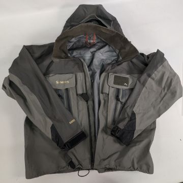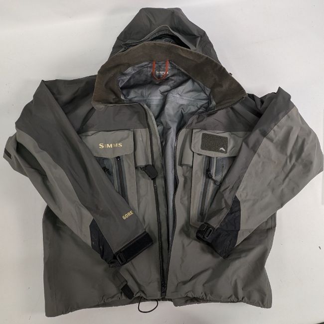 Simms Grey Fishing Gore-Tex Coat, size M, one zip is missing its tab part, otherwise in good clean condition