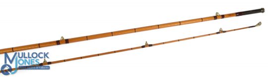 2x Hardy "The Alnwick" greenheart rods, Nos G72.86 and G17.715, greenheart 9ft 3pc plus spare tips, in need of attention, MCB and unnamed bag (3)
