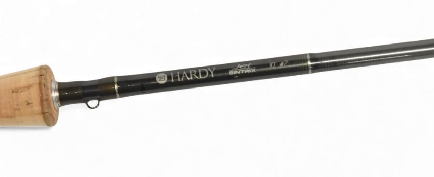 Hardy Alnwick "The Jet Sintrix" carbon trout fly rod, 10ft 4pc line 7#, alloy double uplocking reel seat and collar with fighting butt, lined stripping rings, MCB and zip top Cordura tube. Looks unused, plastic still on handle