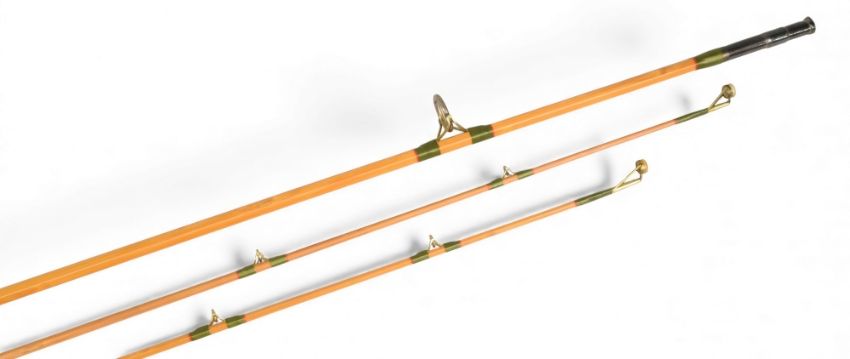 Hardy scarce Marksman Palakona split cane spinning rod No H9171, 8ft 2" 2pc with spare tip (2" short), 22" mushroom handle, alloy down locking reel seat, brass butt ring and agate tip rings, stud lock joint, MCB. Light use