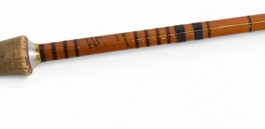 Falcon Works Redditch "The Monarch" heavy split cane spinning rod No 876, 28" handle, alloy down locking reel seat and collar, lined butt/tip rings, cloth bag. Light use