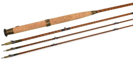 Hardy Alnwick "The Houghton" Palakona split cane trout fly rod No 18548, 10ft 6" 3pc with spare tip, brass sliding reel fittings and collars with concealed brass spike, red agate tip rings, twist lock joints, MCB. Looks reconditioned. Very good for age