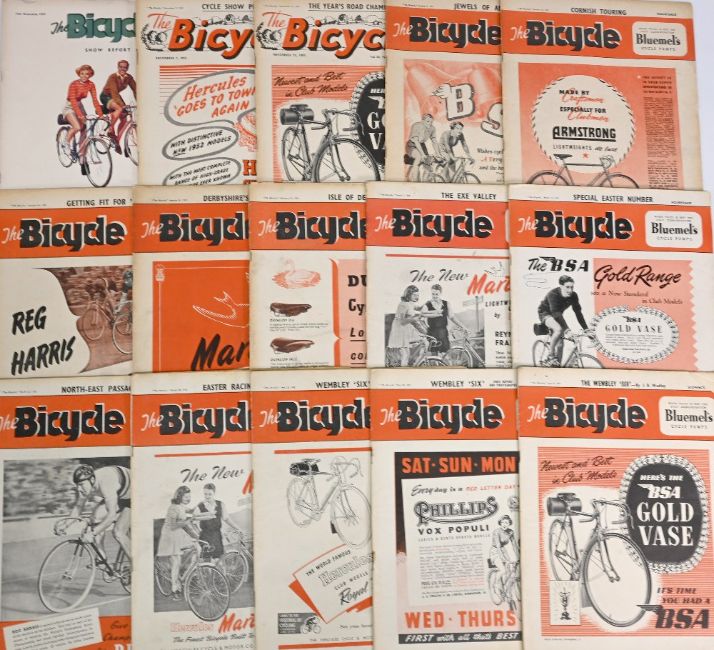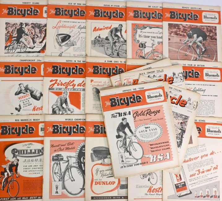 Collection of 1951 Cycling Magazines - to include "The Bicycle" 1951 Vol.31 and 32 No. 774 to Vol. 32 No. 825 - all with their original covers overall (F/G) (41)