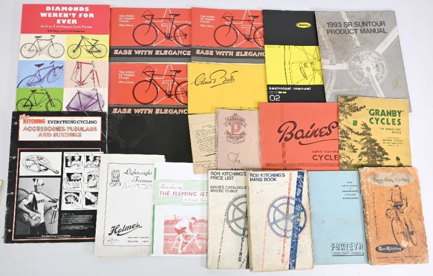 Selection of Bicycle Publications - to include 1950 Catalogue Fonteyn, Ron Kitching Handbooks, Everything Cycling Ron Kitching, Granby Cycles, Baines Cycles, Ease with Elegance Hilary Stone (box)
