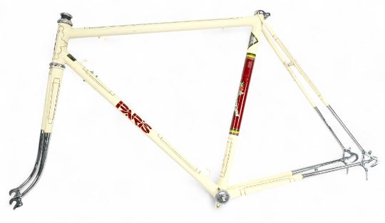 Vintage Harry Rensch Paris Bicycle Frame - No Frame Number 22 inch / 56cm Reynolds 531 Tubing full professional restoration with new transfers with Half Chrome Forks with Chrome rear dropouts, Paris Cycles was started in the early 1940s by Harry Rensch, a close friend and neighbour of Monty Young, Condor's founder. The lightweight thoroughbred frames soon became sought after pieces, famous for their continental flair