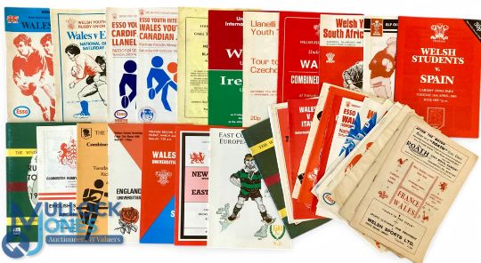 1950-1997 Schools, Youth etc and Age Group Rugby Programmes (c.35): Fine large selection across five decades, including two Welsh Schools internationals, 13 Secondary Schools, 5 Youth, 5 English or Welsh Students, two Wales Under-21s and 5 minor cups or tours. G/VG