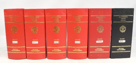 Complete sets of Manchester United home match programmes to include 2008/2009 League (19), FAC (1), League Cup (4), Champions League (6) Friendly (1) Total 31; 2009/2010 League (19), FAC (1), League Cup (3), Champions League (5), Friendly (1), Total 29; all contained in official Manchester United programme holders; good. (A Lot)