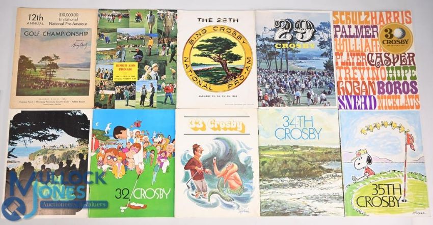 10x Crosby Pro-Am Tournament programmes 1953-1976 to include 1953, 1968, 1969, 1970, 1971, 1972, 1973, 1974, 1975, and 1976 - generally in good condition with some marks, rusty staples, creases