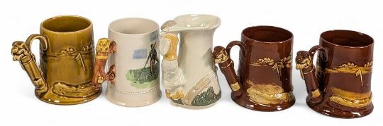 Golf Ceramic Tankard, Mug, Cup and Saucer, with makers of Buchan Pottery, Dartmouth Devon, Arthur Wood, Wade, Crown Staffordshire - a few have slight chips (15)