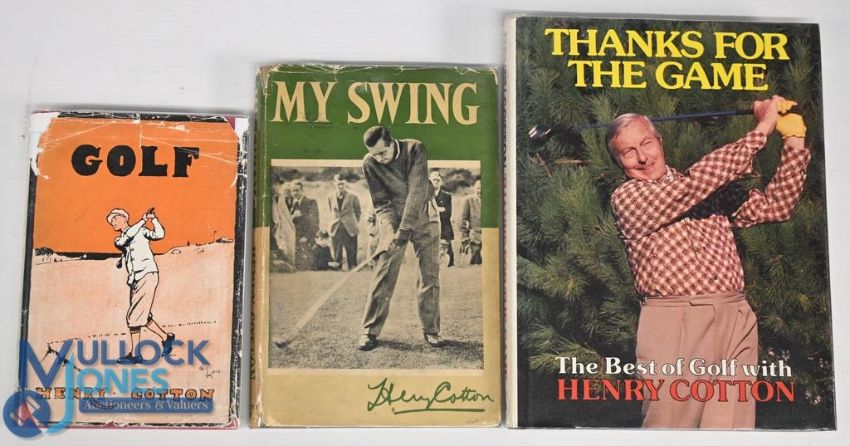 3x Henry Cotton golfing books to include: Golf 1931, My Swing 1952 and Thanks for the Game 1980, good/fair condition with some paper loss to dust jackets