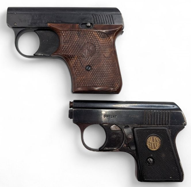 2x 6mm Blank Starter Pistols by EM-GE Sport Waffenfabrik made in Germany, two different models with handle variations