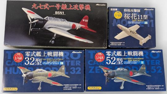 Marushin Japanese metal unmade 1:48 Scale Aircraft Kits, 5480 type zero carrier fighter model 52, 8500m B51N, 6480 hump model 32, 3980Baka model 11
