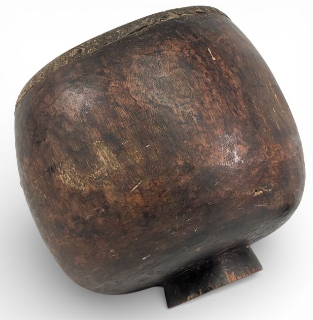 Fine carved wooden Tribal Drum with foot - size #32cm x 37cm