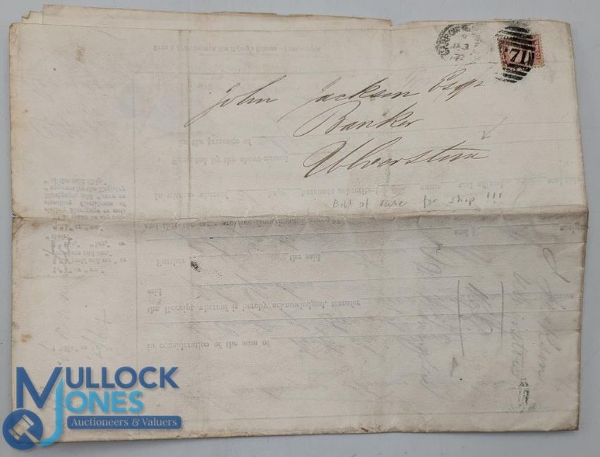 Maritime: Bill of Sale for a Ship - fine printed document with ms insertions dated 1871 being the bill of sale for a cargo ship named the Margaret Bannister, detailing all the aspects of it including dimensions, number of sails, tonnage etc. A very attractive document from the golden age of sailing ships