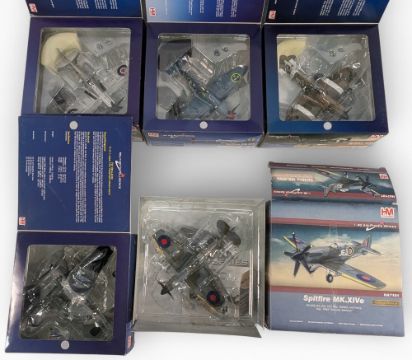 5x Hobbymaster Miniature Diecast Airplanes: 1:48Ha7104 Spitfire XIVe, HA7602 Spitfire PR.XIX, HA7101 Spitfire Mk.XIVe, HA7107 Spitfire XIV, HA7403 FW 190 A-8/R2 (5)