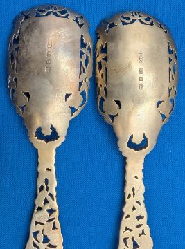 Boxed pair of silver hallmarked 1899 Birmingham, Levi & Salaman Royal Coat of Arms enamelled Spoons, box has wear #70g