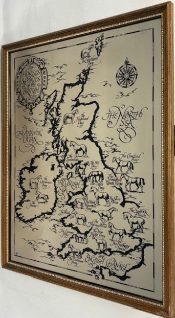 Large framed printed Mirror Map: Horses of the British Isles - size 57cm x 73cm. Collection only