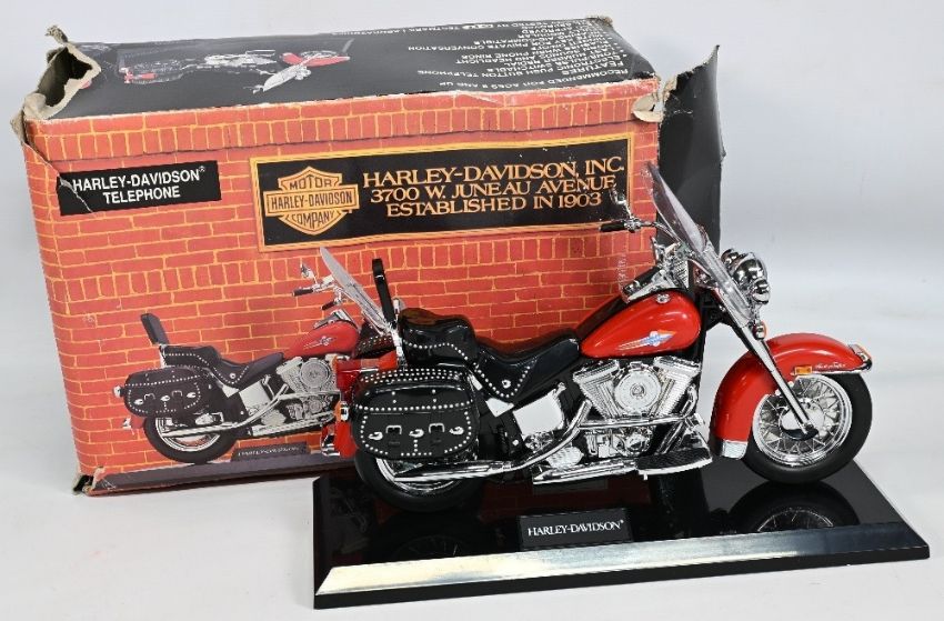 Harley Davidson Motor Bike Telephone: push button telephone, great display item, has all cables and appears unused. 38 x 25cm