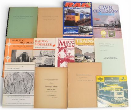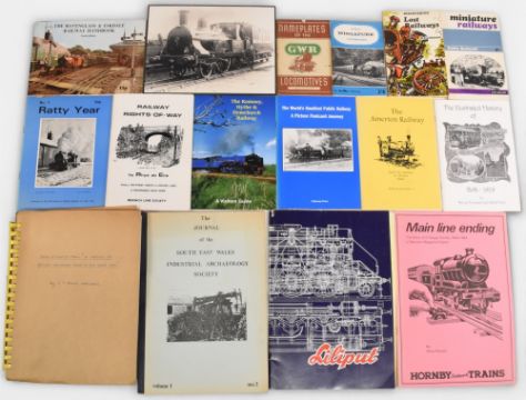 A selection of Railway themed hardcover and paperback books and publications to include An Historical Survey of Great Western Sheds 1837-1947 E Lyons & E Mountford 1979, The Ravenglass & Eskdale Railway 1968 W J K Davies, The Romney, Hythe & Dymchurch Railway 1975 W J K Davies, Named Locomotives of British Rail Diesel and Electric Michael Oakley, together with 50 other publications (54+) in generally VG-G condition