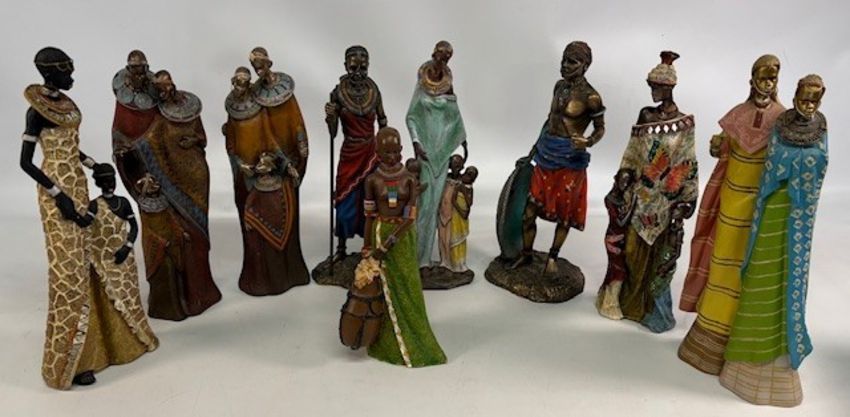 9x Shudehill African Massai Figures, up to 30cm tall, in used condition, some missing weapons (2 boxes)