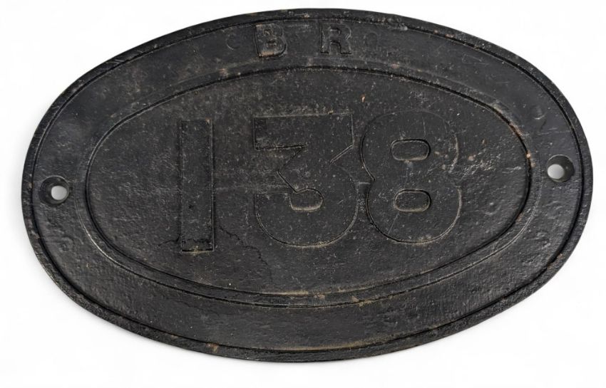 BR British Railway Cast Signs British Rail No 138 oval bridge or shed number sign, painted black size 45cm x 28cm