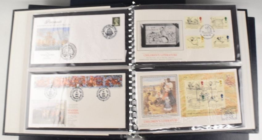 Silk First Day Cover Collection: British examples by Benham and Sotheby's, collection housed in 5 albums in slip cases (box)