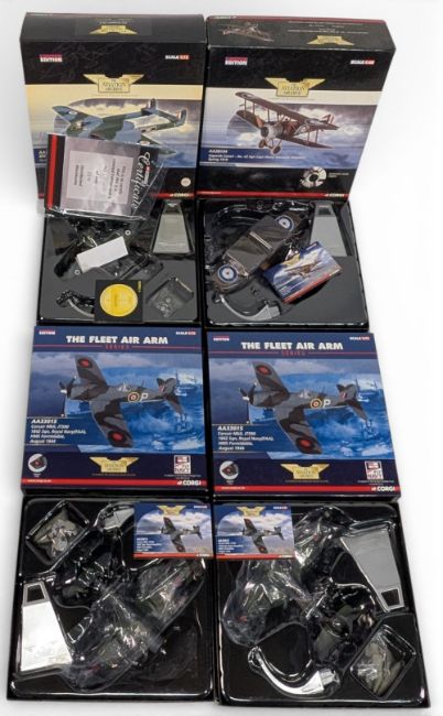 4x boxed Corgi - The Aviation Archive, 1:72 AA37302 DH Vampire FB9, AA38104 Sopwith Camel, AA33015 Corsair MkII x twice. Good condition