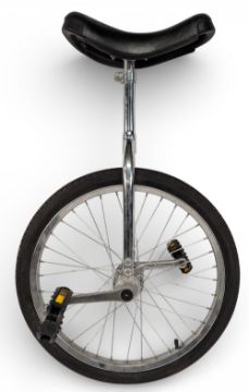 Modern Unicycle Bike: aluminium frame, adjustable seat, plastic pedals, in good used condition