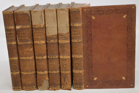 1837 The Naval History of Great Britain - William James - Complete 6 volume set, William James's Naval History is one of the most valuable works in the English language on the operation of the Royal Navy during the French Revolutionary and Napoleonic Wars. James corresponded widely with the survivors of the events (bindings in poor condition)