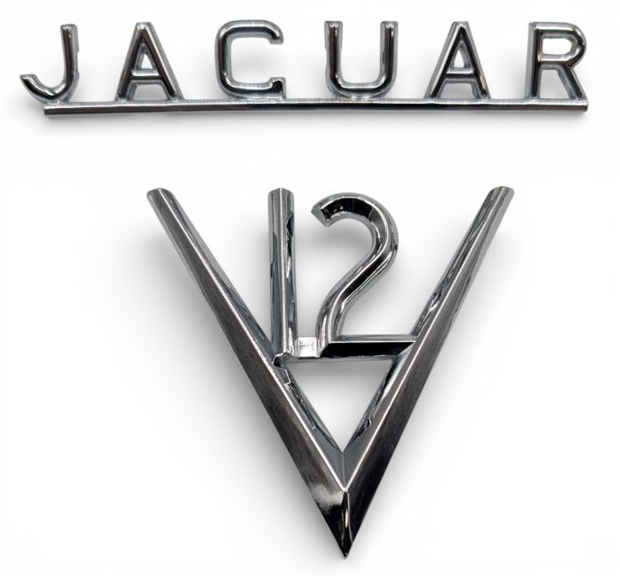 2x Original Jaguar V 12 Chromed Emblems both original used emblems, comes with an unused Jaguar XJ 12 owner’s manuals, service handbook, drivers club all in jaguar plastic wallet from 1972, Suit E type, XJ 12