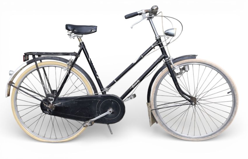 Unusual Bata Ladies Bicycle, with Sturmey Archer 3 speed gears, luggage rack, untested dynamo lights, sprung King seat, fully enclosed chain (tyres perished), #22” frame