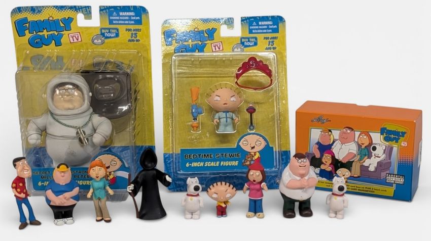 Family Guy Collectables: to include two carded figures, a loose selection and a part set of Leaf cards (no signed card in box)