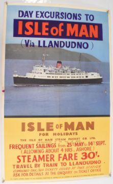 Day Excursions to the Isle of Man via Llandudno Poster, c1980s, good condition, rolled with folds - size 64cm x 102cm