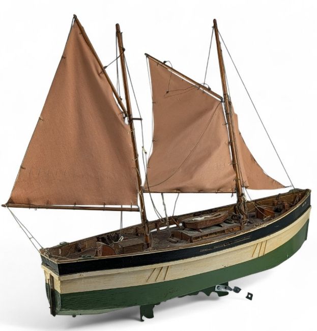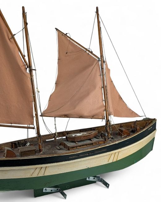 Large Herring Drifter Model Boat, a vintage model named Lady Eve, with age related wear - some restringing needed to sail - size #80cm x 96cm