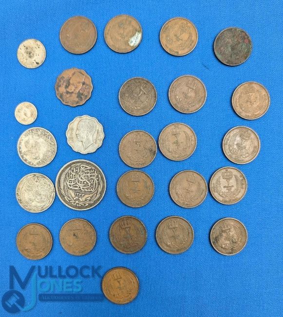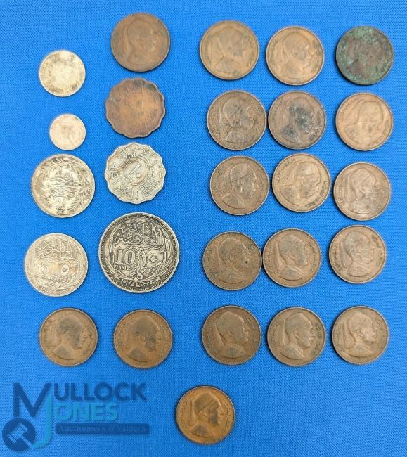 Islamic Coins Collection: to include a good selection of silver Egyptian piastres 1917, and coins with a qty of copper, plus 2 Libyan millimes coins