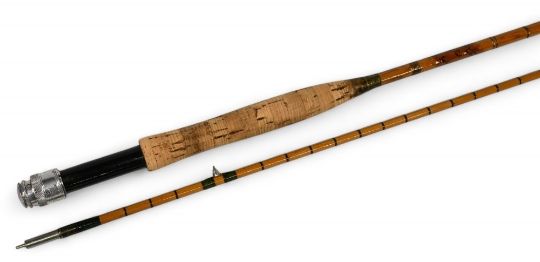 Hardy Alnwick "The Featherweight Perfection" Palakona split cane trout fly rod E19800, 9ft 6" 2pc, alloy uplocking reel seat, clear agate butt/tip rings, cloth bag. Light use, looks refurbished